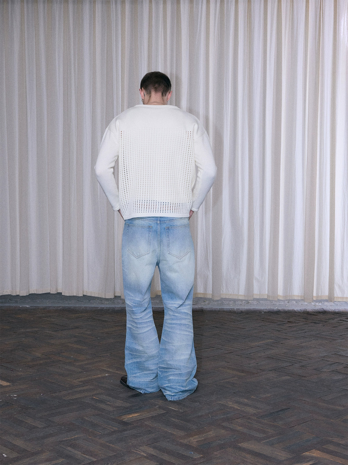 This sweater has a relaxed fit with good elasticity. It runs true to size — choose your usual size for the intended fit, or size up if you prefer a more oversized look.